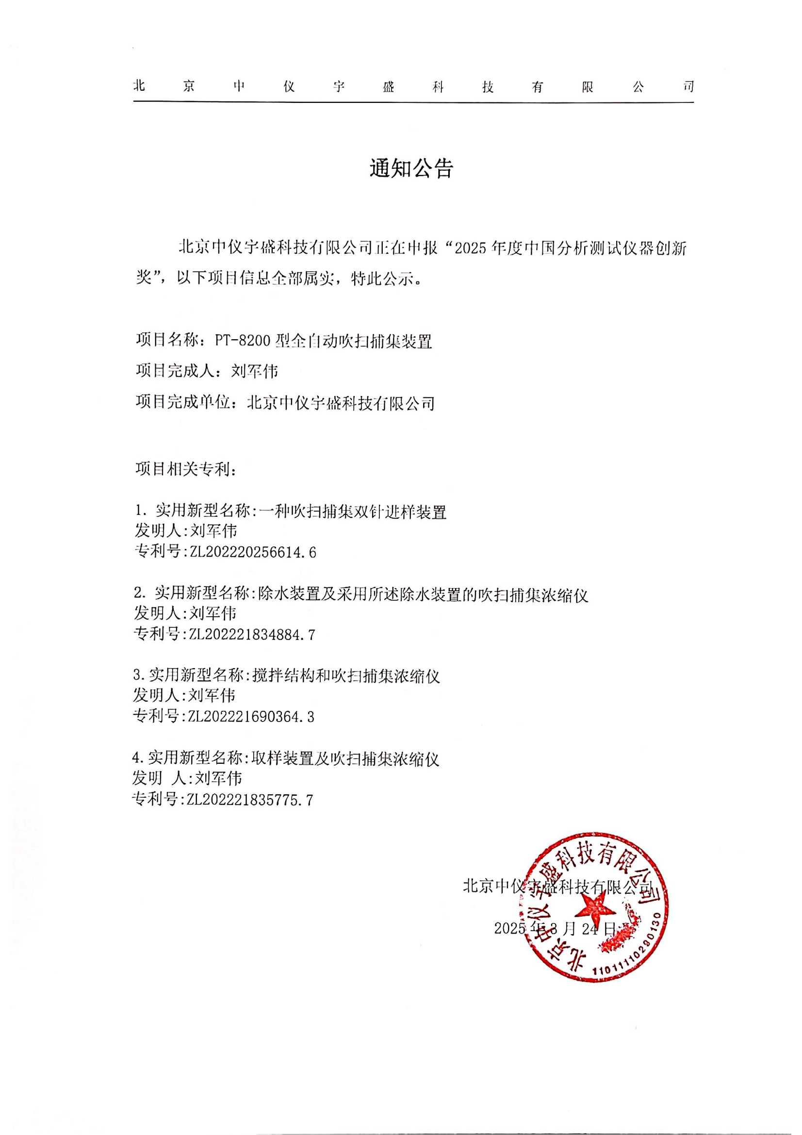• 關(guān)于北京中儀宇盛申報(bào)“2025年度中國分析測試儀器創(chuàng)新獎(jiǎng)”的 2025-03-24